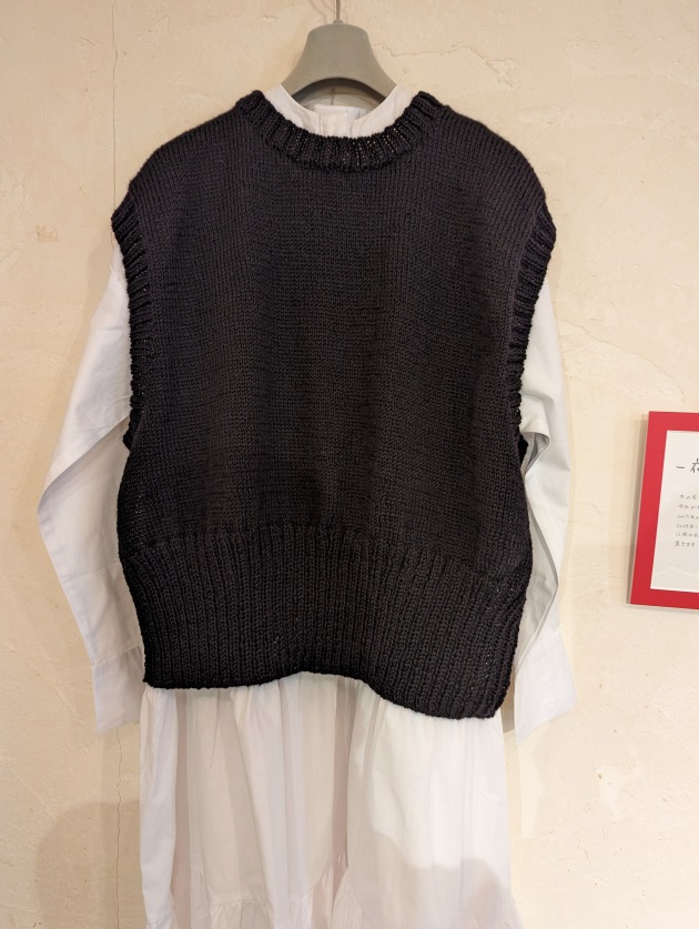 袖ぐりが大きく、脇スリットになっているので、シャツワンピなどとおしゃれに合わせられますよ。