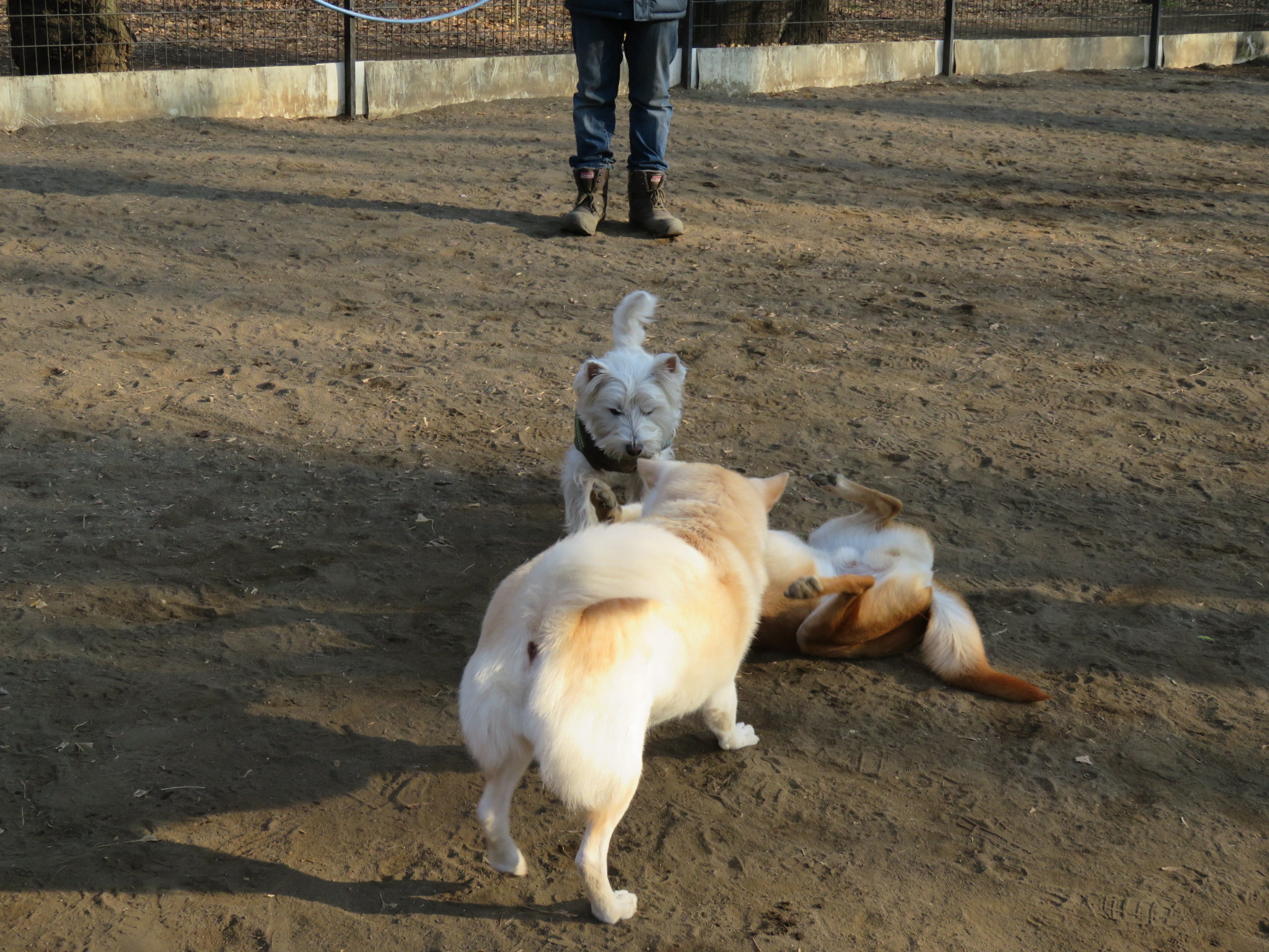 今朝は大小のワンズが遊びにきていたので、 昨日ほど寒々しいドッグランではありませんでした。