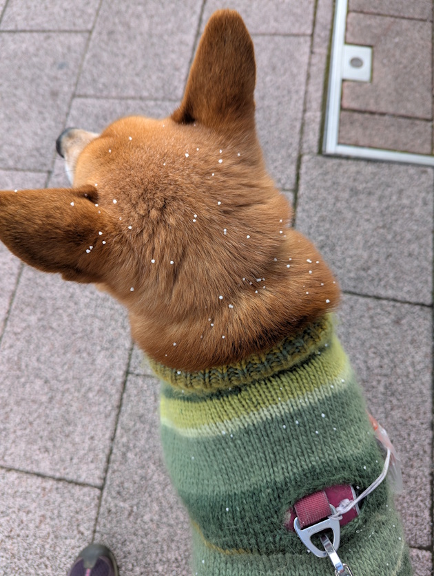 今朝はあられが吹雪いていました。