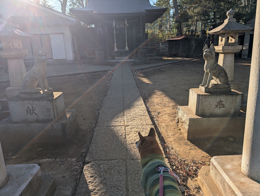 いつもの公園へ午後散歩。園内の御嶽神社へ立ち寄ってお参りしました。
