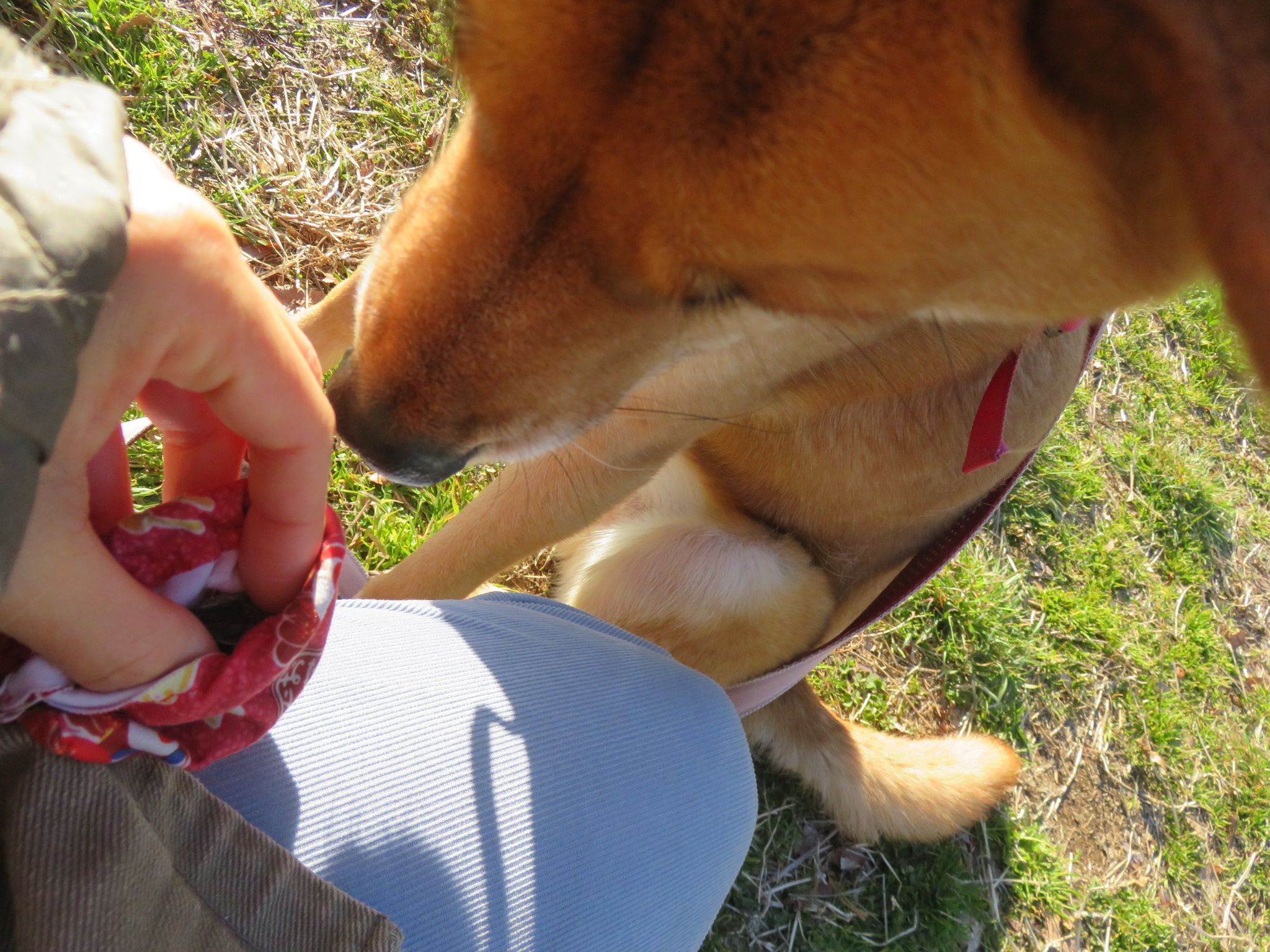 美味しいおやつが入っているから、みんな袋をペロペロします。