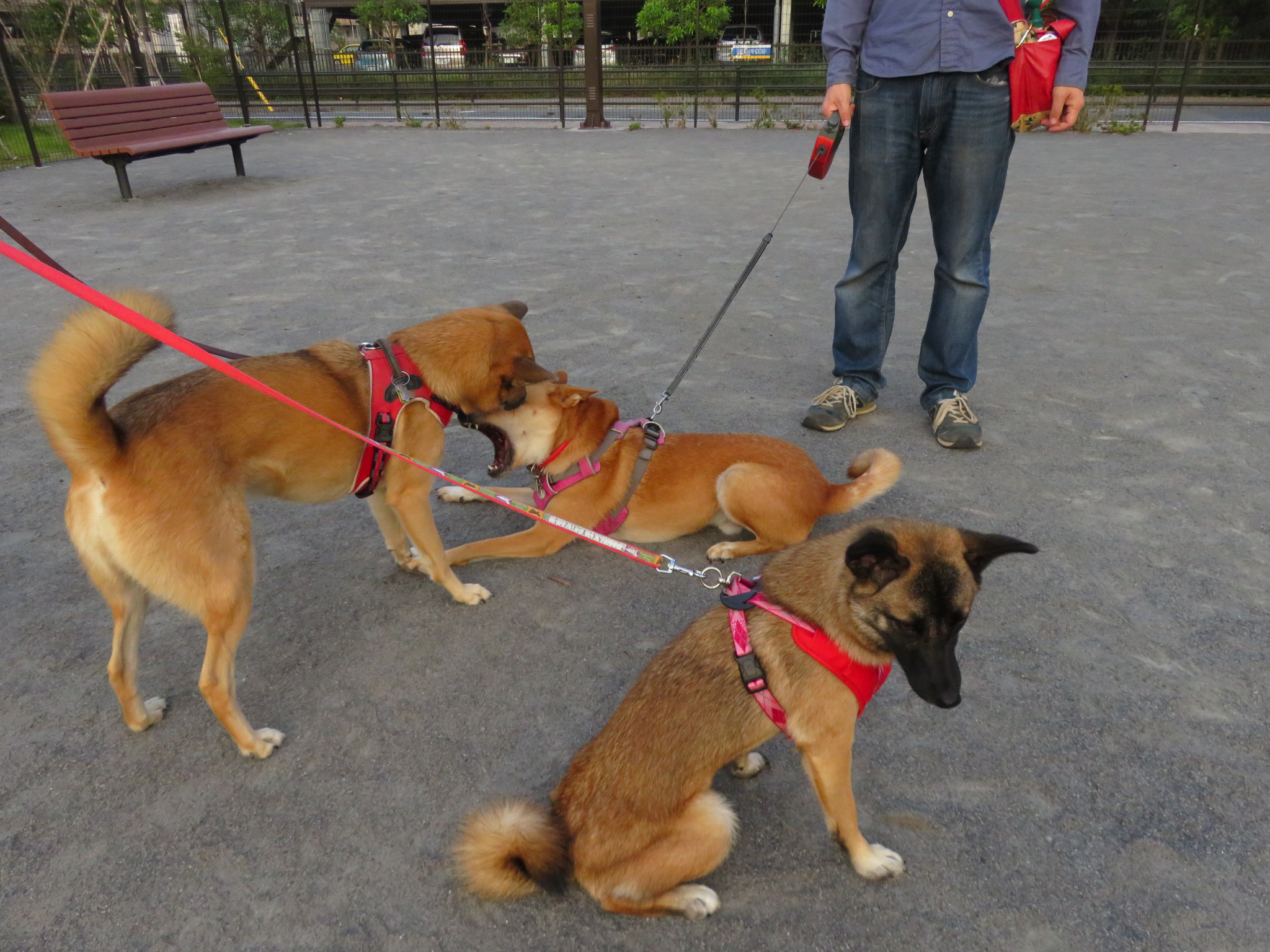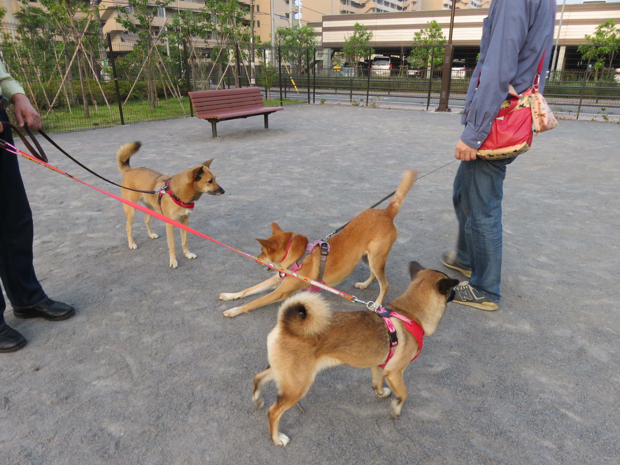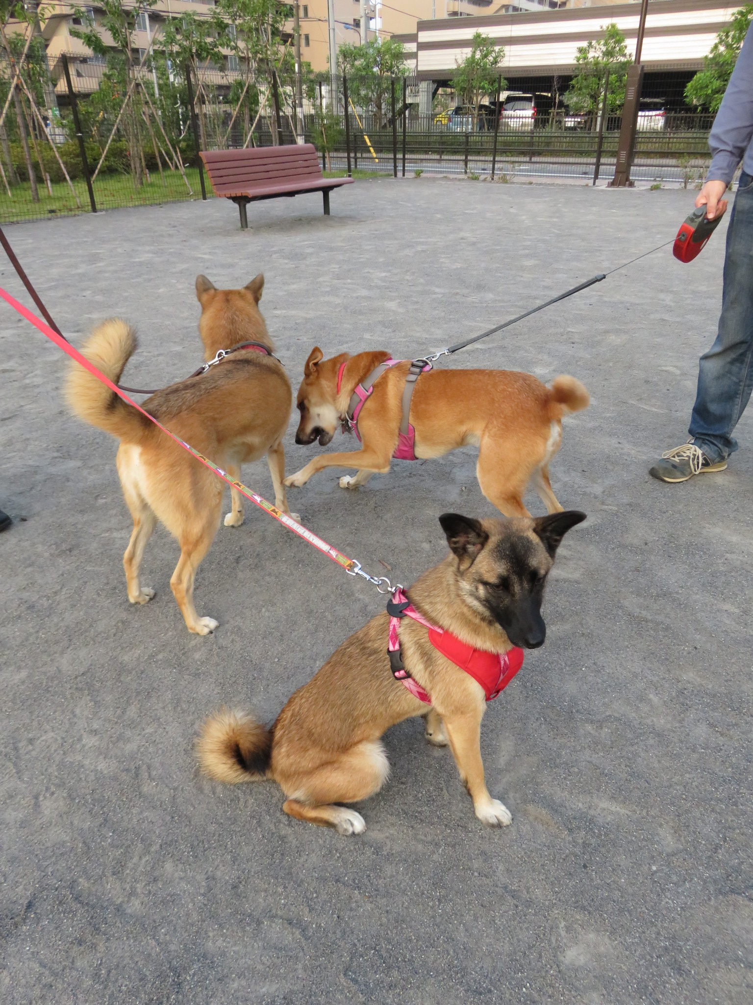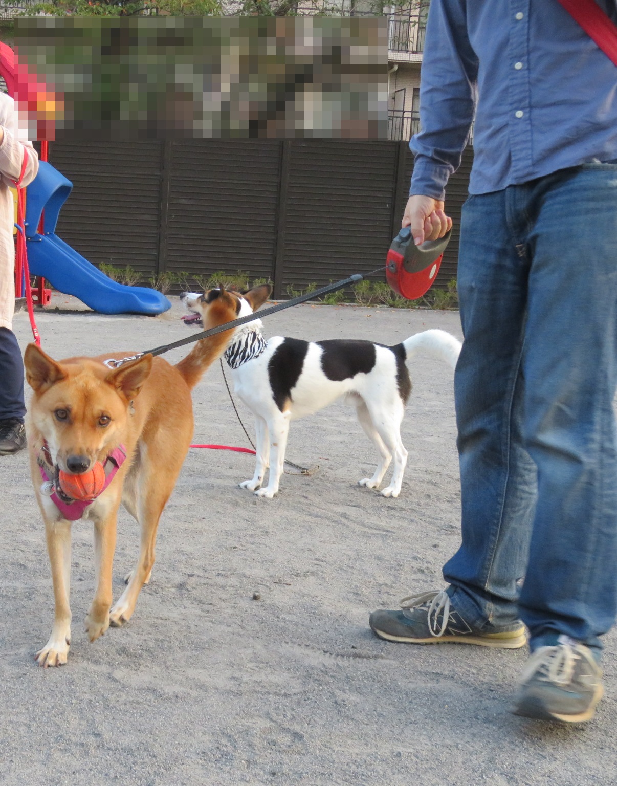朝の公園に着いたら、ルークがボールで遊んでいました。