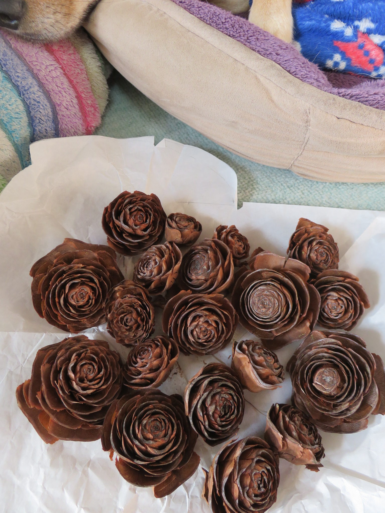 乾燥して花びら(じゃないけど)が開いてくる と、ものの本にあったのでそのまま放置。