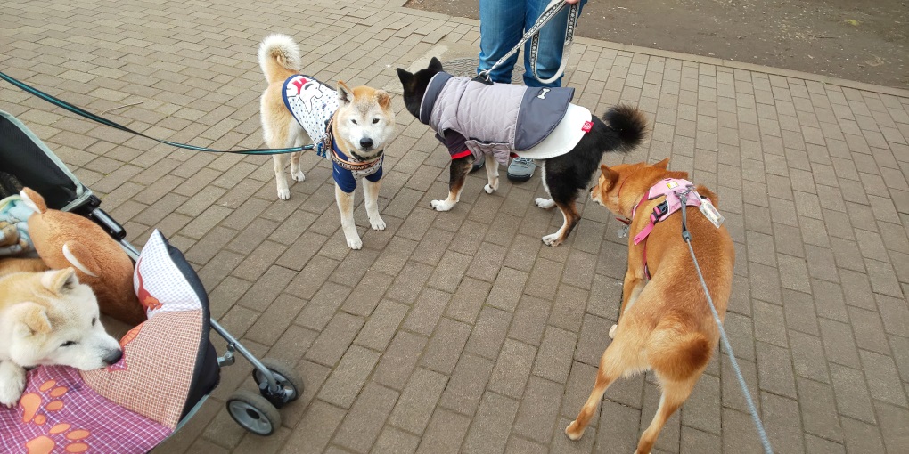 夕散歩は父ちゃんにお任せ。友達に会えたようです。