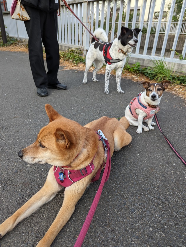 途中で会ったルースとレイラも、バッグの匂いをくんくん嗅いで、私の指をペロペロしてました。