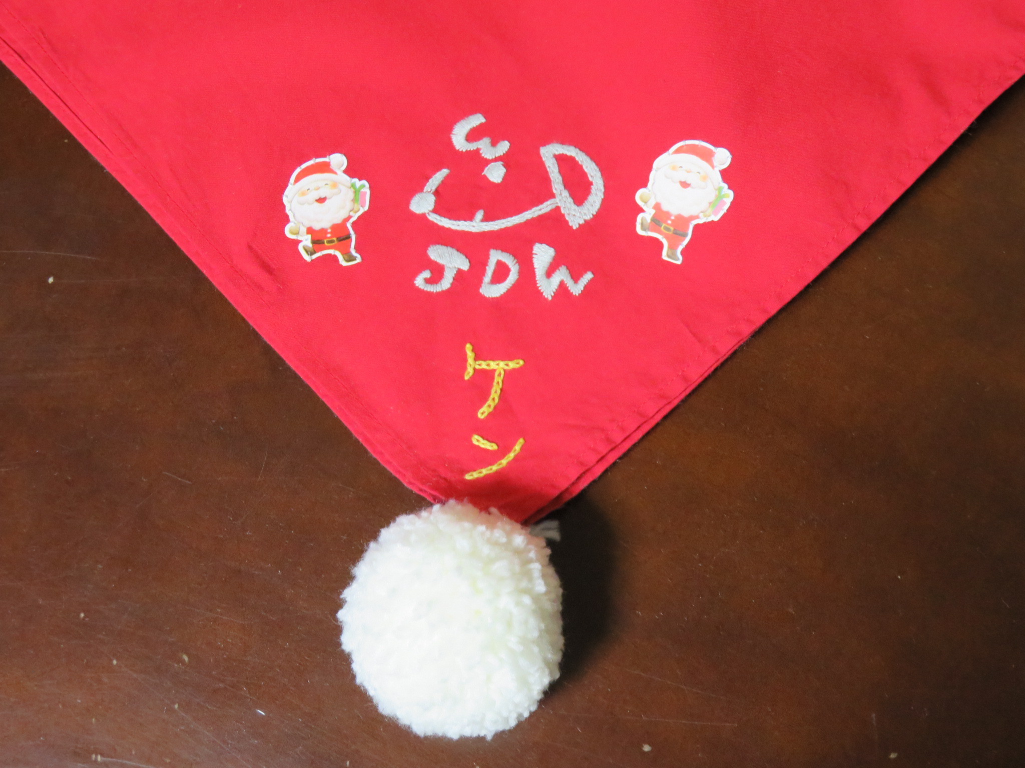 クリスマス柄のバンダナを首に巻いてたね。