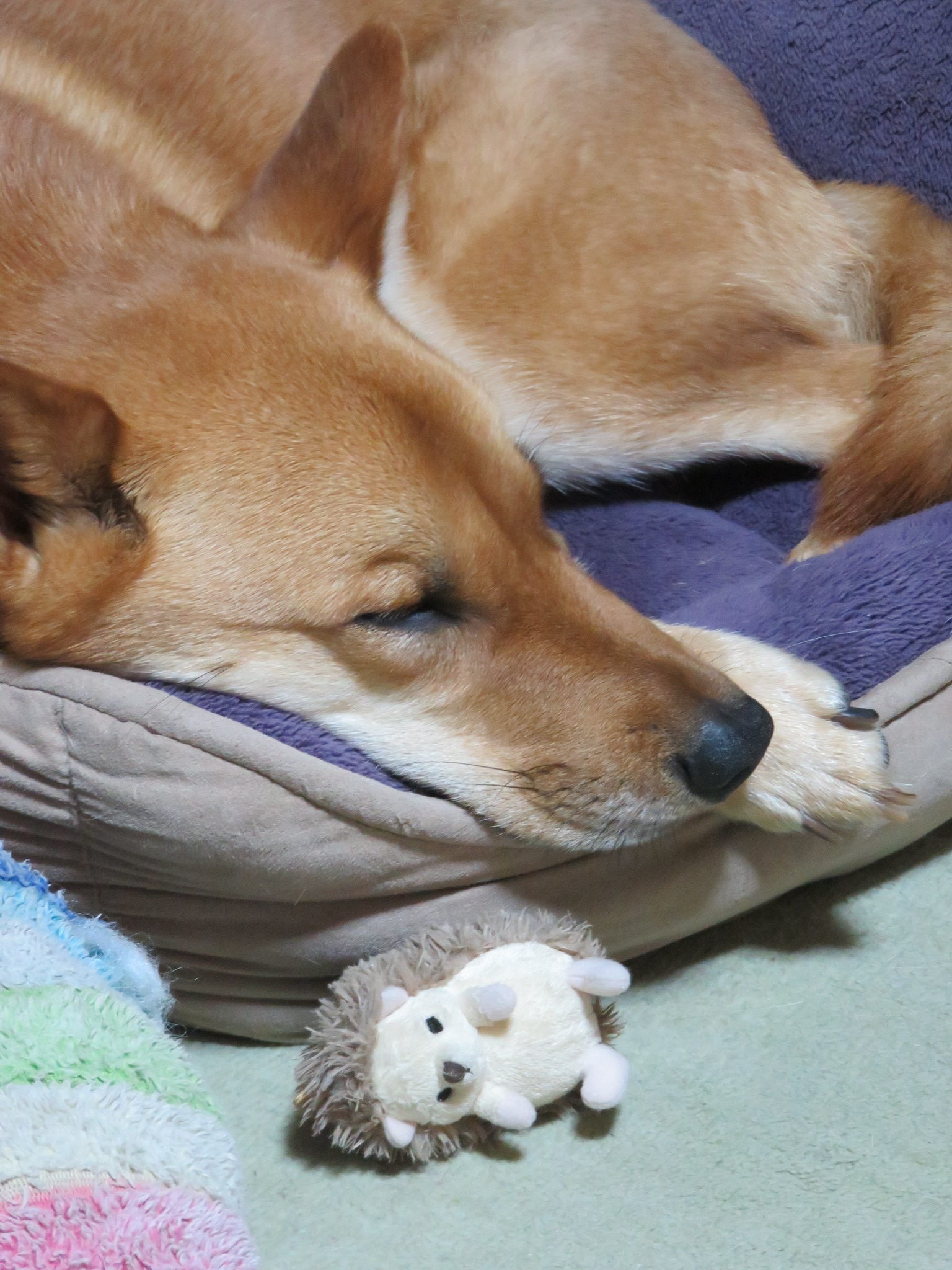 ハリネズミ君と一緒に寝ています。