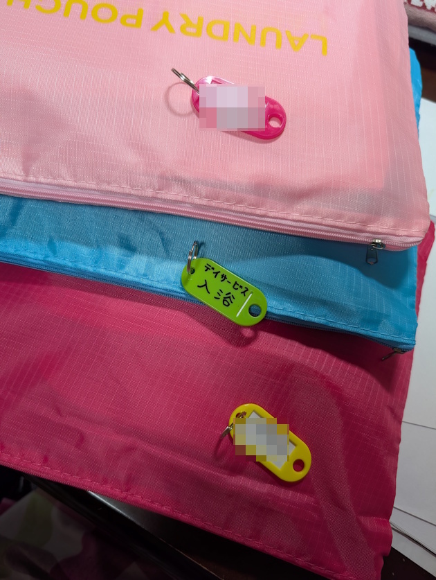 (短期入所施設で働いていると、利用者さんのご家族が私たち支援者に分かりやすいように着替えなどの荷物をパッキングしてくださっています。それを今の私には逆の立場として、とても参考にさせていただいています。)