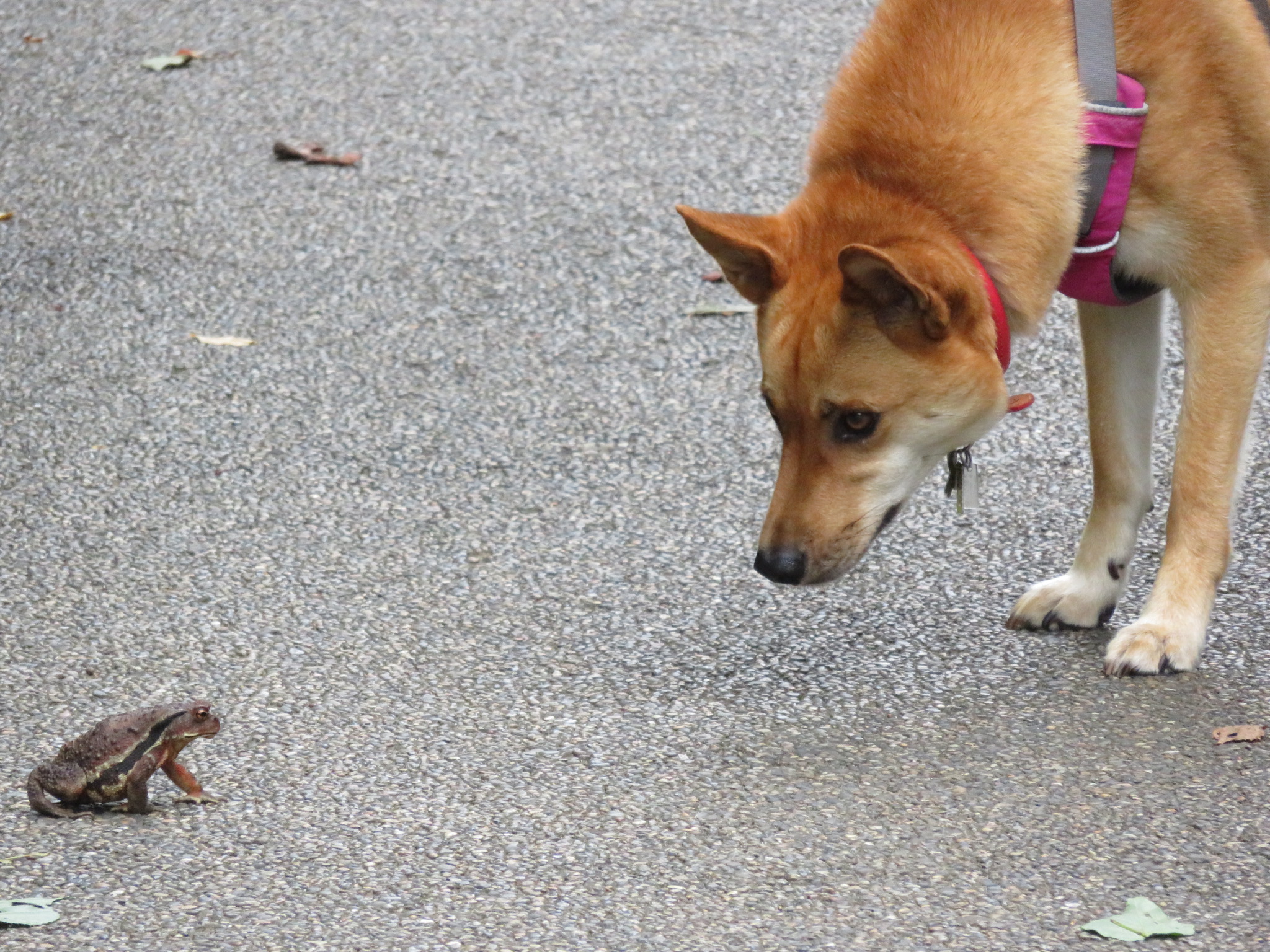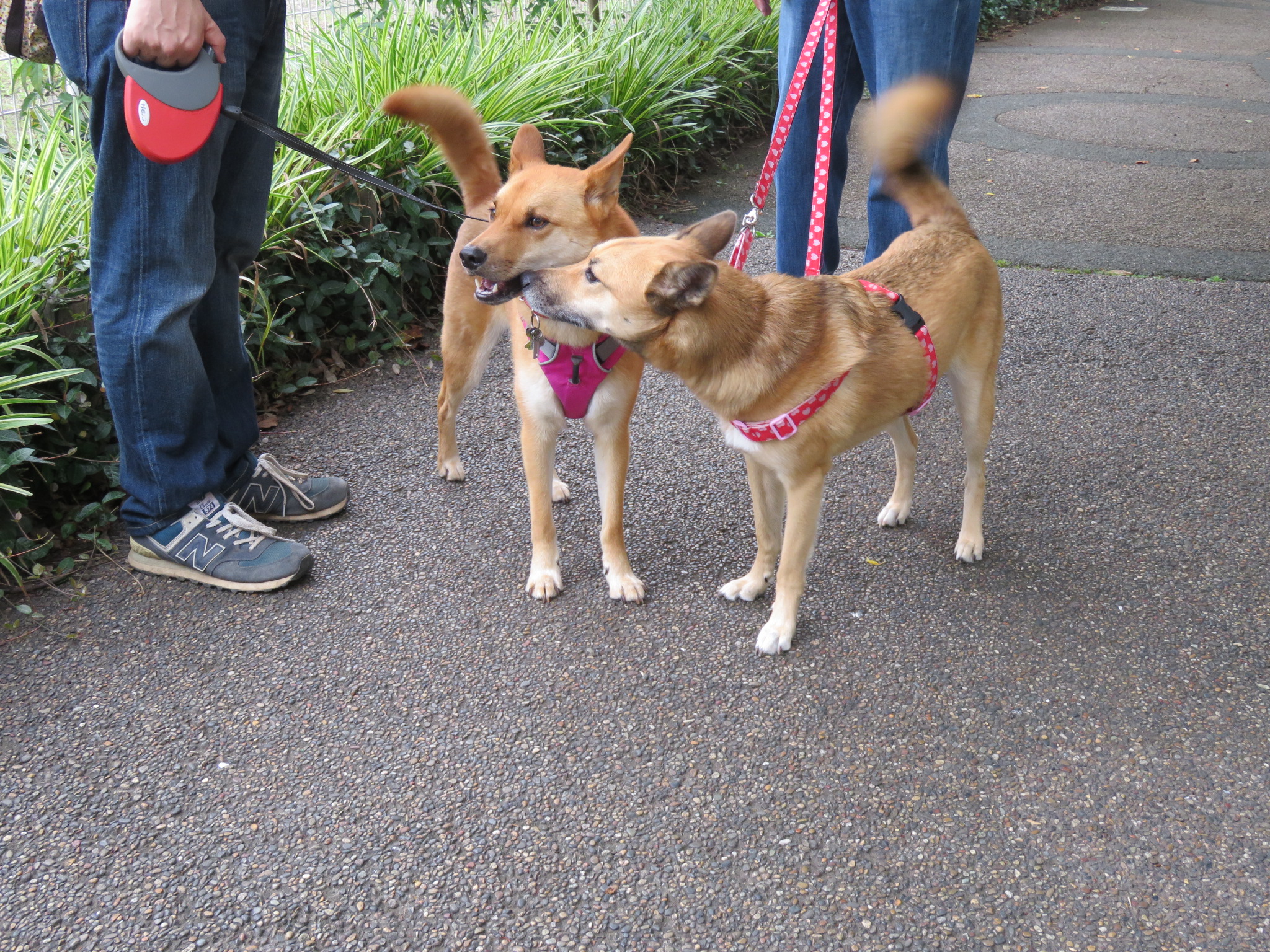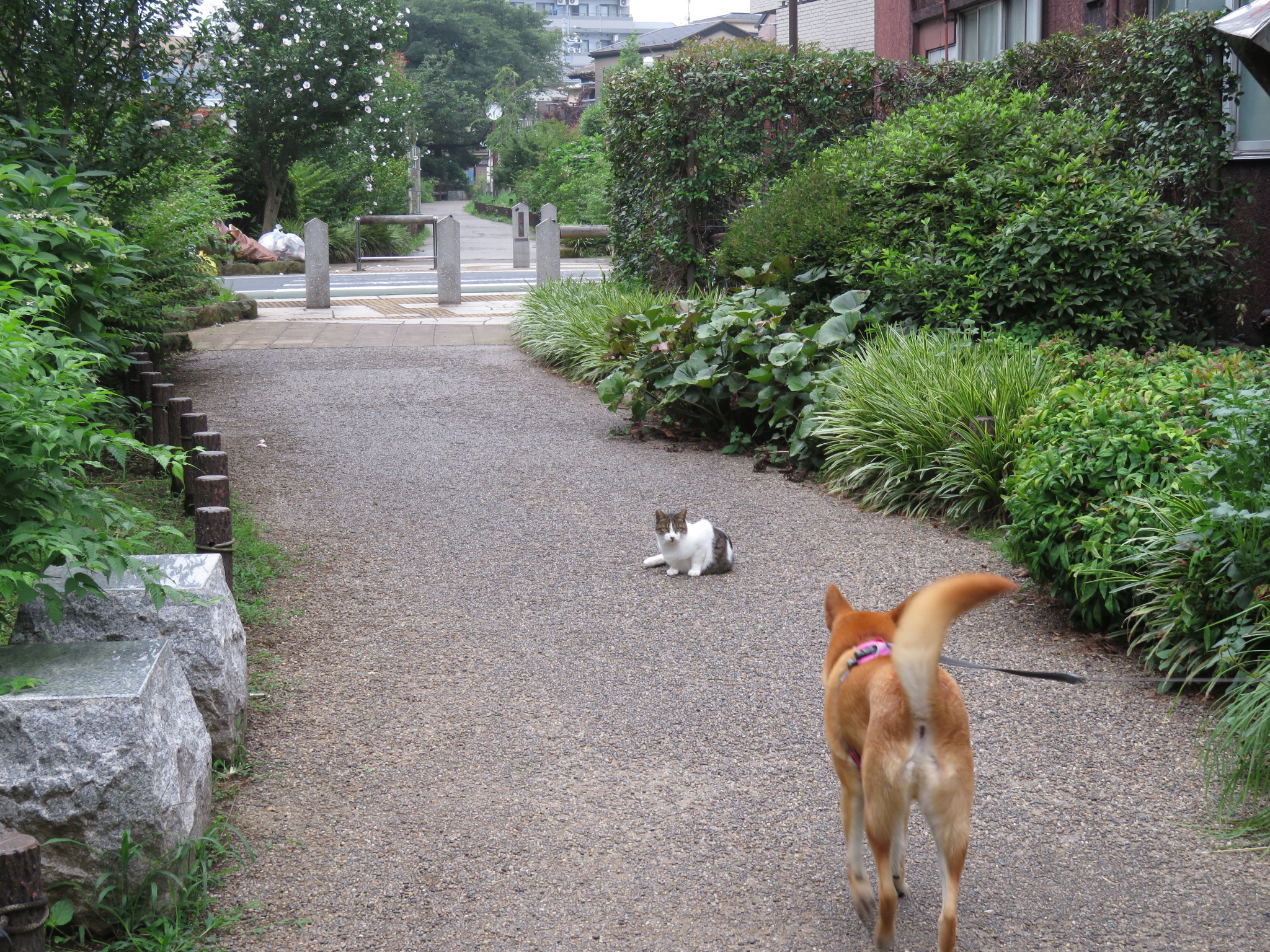 先代犬のアトスは 母猫に襲われたことがあるので、 猫を見たとたんに、もの凄い声で鳴き叫んでいましたが、 ケンはまだ怖い目に遭っていないので冷静です。