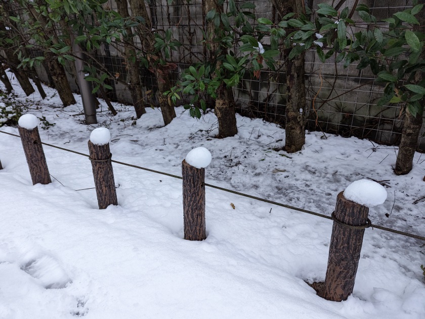 今朝は、歩くのに苦にならないくらいの積もりぐあい。