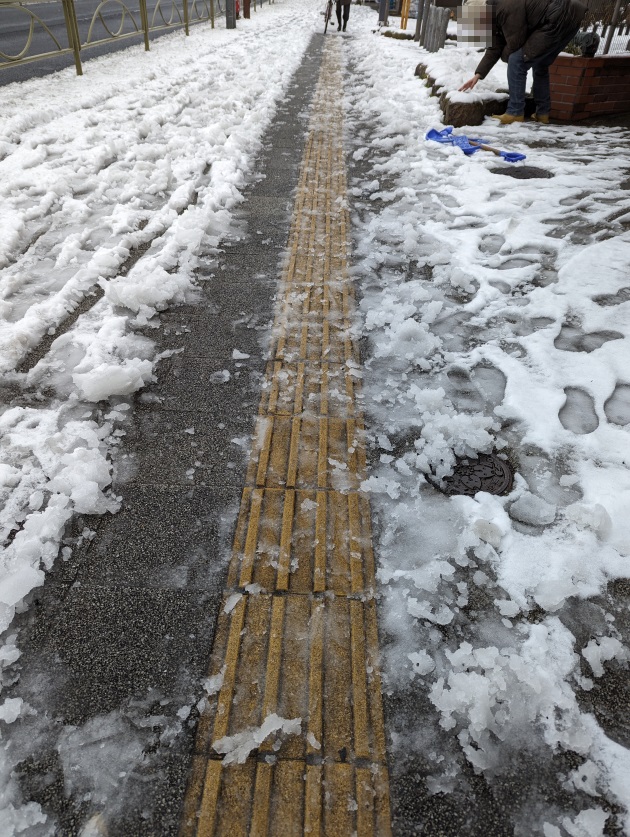 しかしこれが功を奏して、点字ブロックの溝の雪をうまくかき出すことができました。