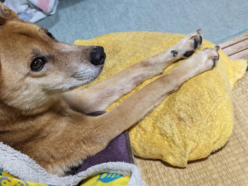 昨夜、気持ちよさげに眠っているところを撮ろうとした瞬間、雷? 雪なのに?