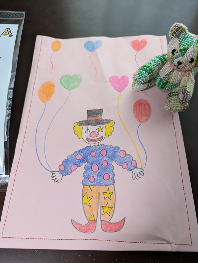 利用者さんが絵を描いた紙を、利用者さんのミシンの練習用に袋にしているとスタッフさんが教えてくれました。