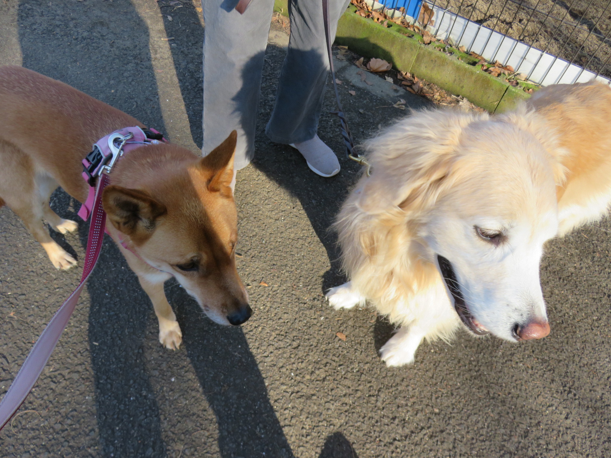 お互い珍しい時間帯の散歩なのに、こういう偶然はうれしいものです。