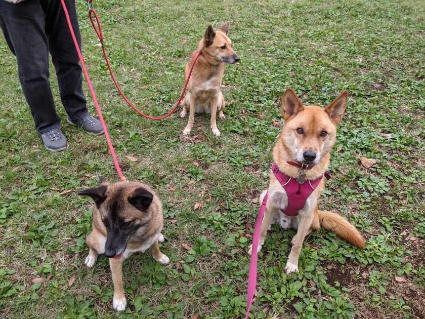草の上でテンション上がるあんずは、ケンと一緒に飛び跳ねてました。