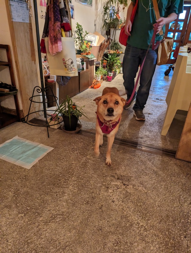 店内には保護犬・猫の活動費となるハンドメイド作品がいつでも展示されていて、カワイイの見つけたよ~