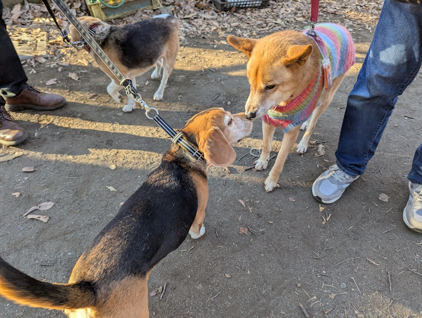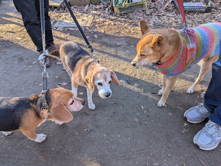 ひんやり冷たい空気の中、ドッグランからの友の叫びがしっかりと響いています。