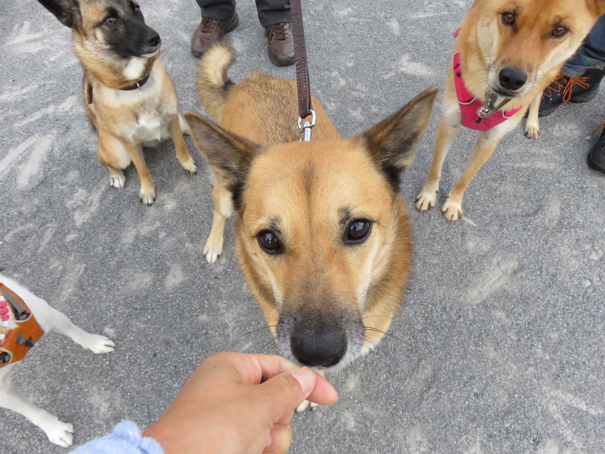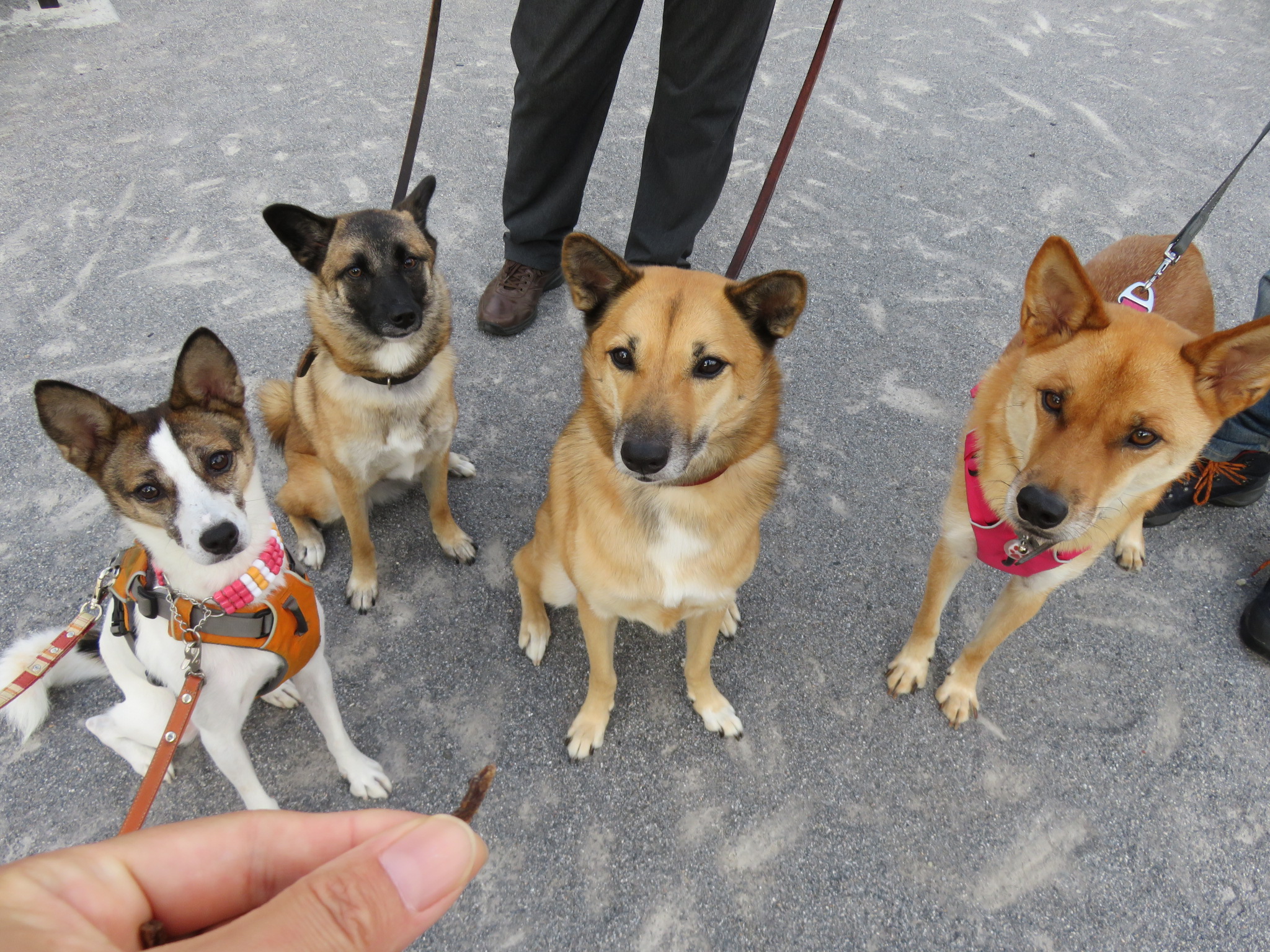 やっぱおやつがあると、みんなちゃんと寄ってお座りするのね。