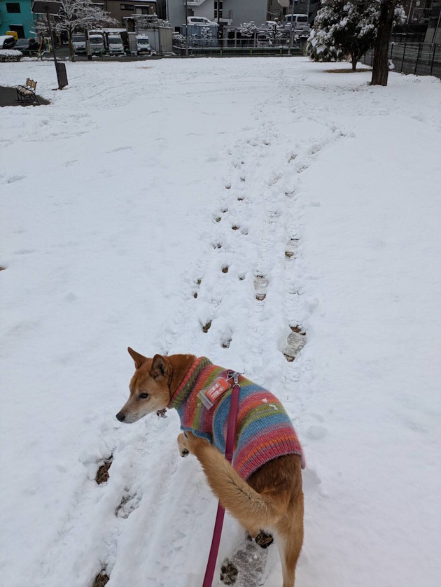 ケンちゃんもちめたーい雪を楽しんだみたいです。