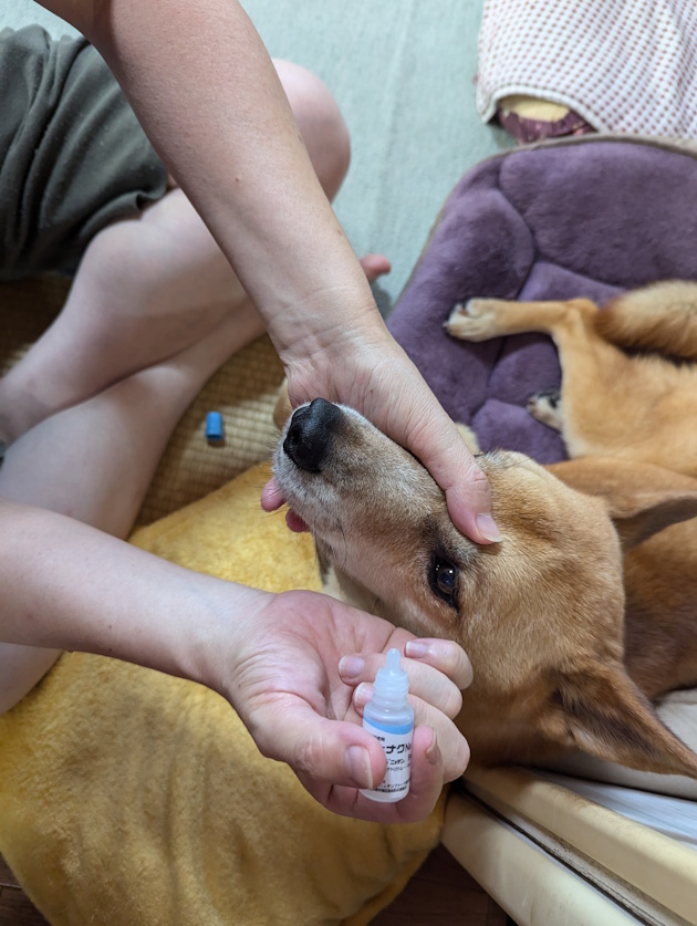 目薬をまったく嫌がらないおりこうさんなケンちゃん。
