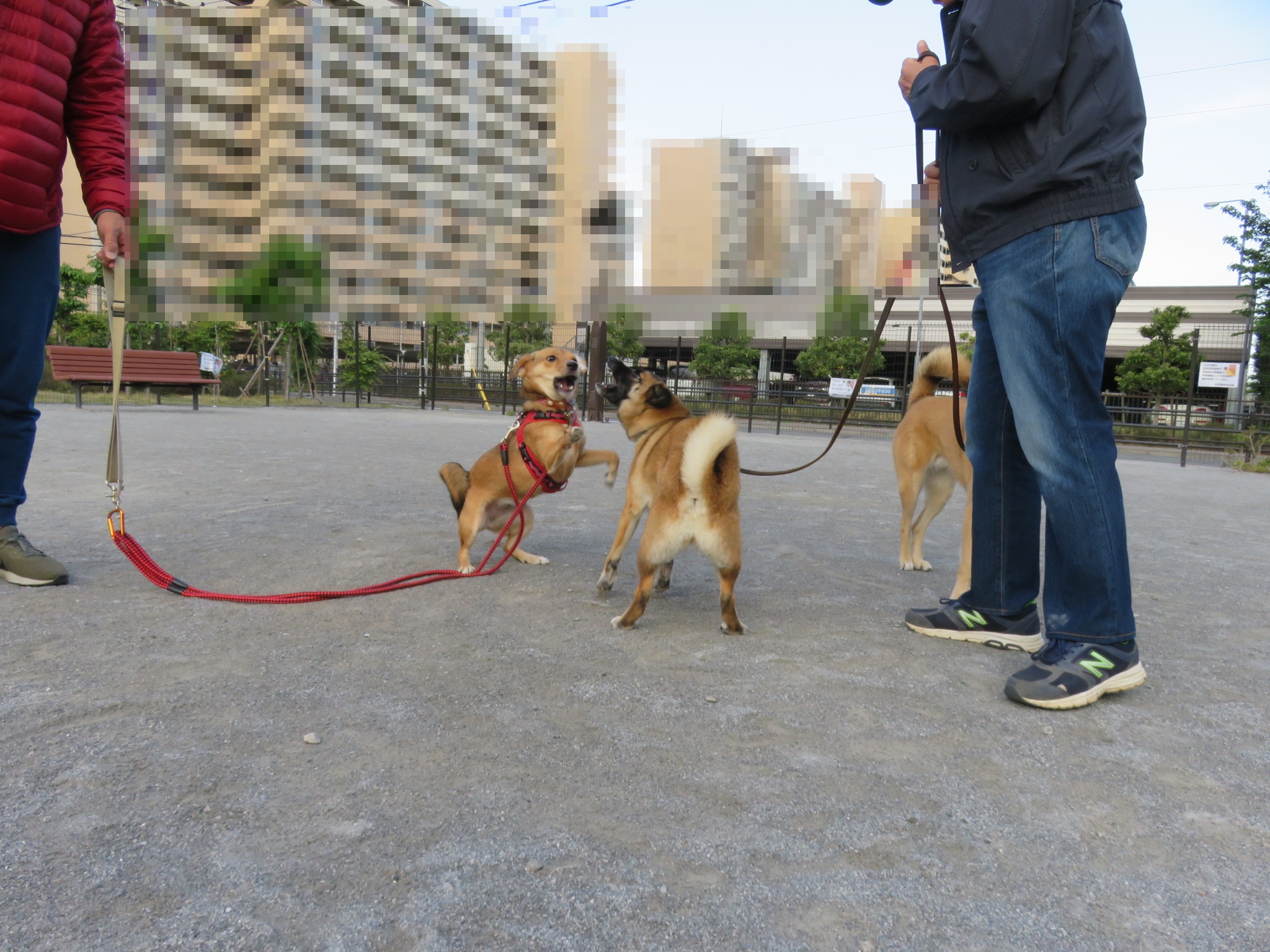 あんずとパルちゃんのリードは繋がっているので、